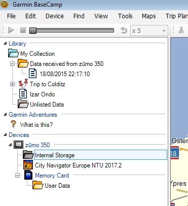 When I have finished creating routes and trips in Basecamp I save to my Zumo350LM sd card.