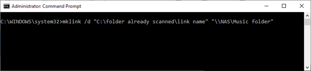 Ensure you are already scanning for music in Garmin Express. If you want to use the default user music folder it should include somthing like C:\Users\username_000\OneDrive\Music\ instead of "folder already scanned" below. "link name" is the name of the new soft link and must not exist already. Replace "\\NAS\Music Folder" with your network location. Quotes only needed if you have spaces in your path.