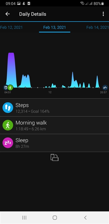 What I meant is it is not recorded the km I've walked during the day of Feb 12-14.