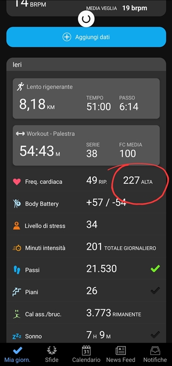 Hello, in Garmin Connect Mobile, in my day I see in hearth Frequency an High value that is not recorded by any activity. How can resolve this issue ?