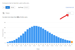 Is there a way in Connect to see average daily number of steps in a given year (eg 2023) instead of the rolling previous 12 months?
