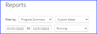 Reports >> Progress Summary >> Custom Dates >> Choose an activity