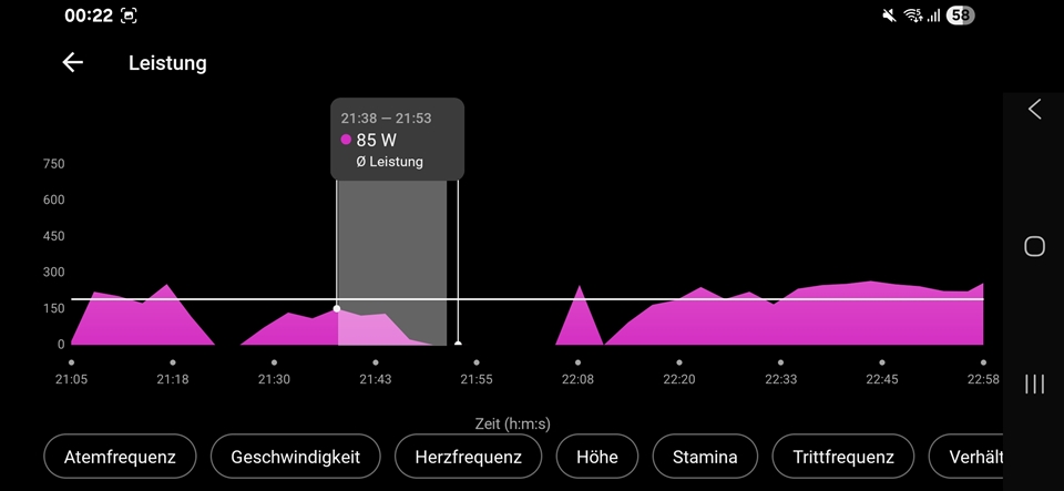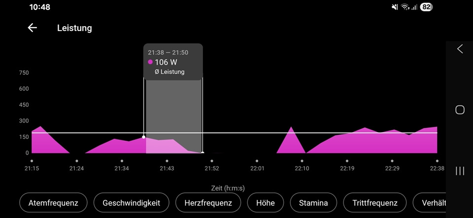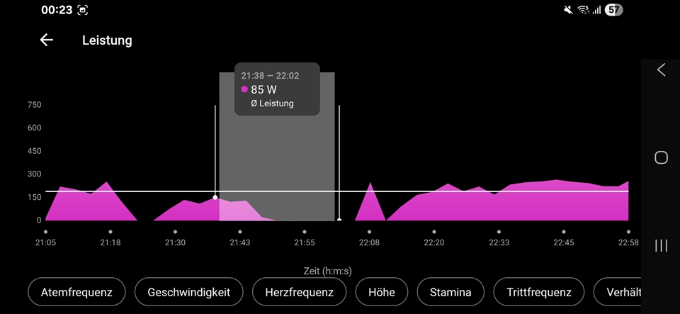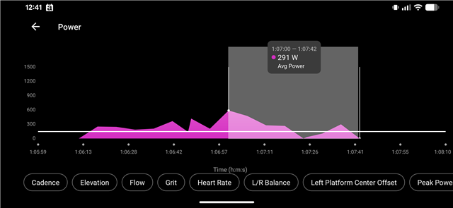 If you zoom in on the charts (e.g. power) of an activity, you can select a section for which the average value is then automatically displayed. There seems to be a bug here that causes values ​​with 0 to be incorrectly included in the calculation. The value 0 appears to be integrated into the average only once, regardless of how long the value 0 lasts.