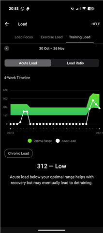 I can still see the activities individually in Garmin Connect, and they appear on the exercise load tab but my training load chart is missing the data. I generally have 3 sources of activity, Garmin Forerunner 245, Edge 540 and a sync from Zwift. Any ideas on how to force a sync would be appreciated! I've tried editing an activity to add some gear and perceived effort. I downloaded one activity as a fit file and re-uploaded it. I've also created a manual activity. I tried turning off physio sync on the phone and did a re-sync. I'm totally out of ideas!! Thank you!