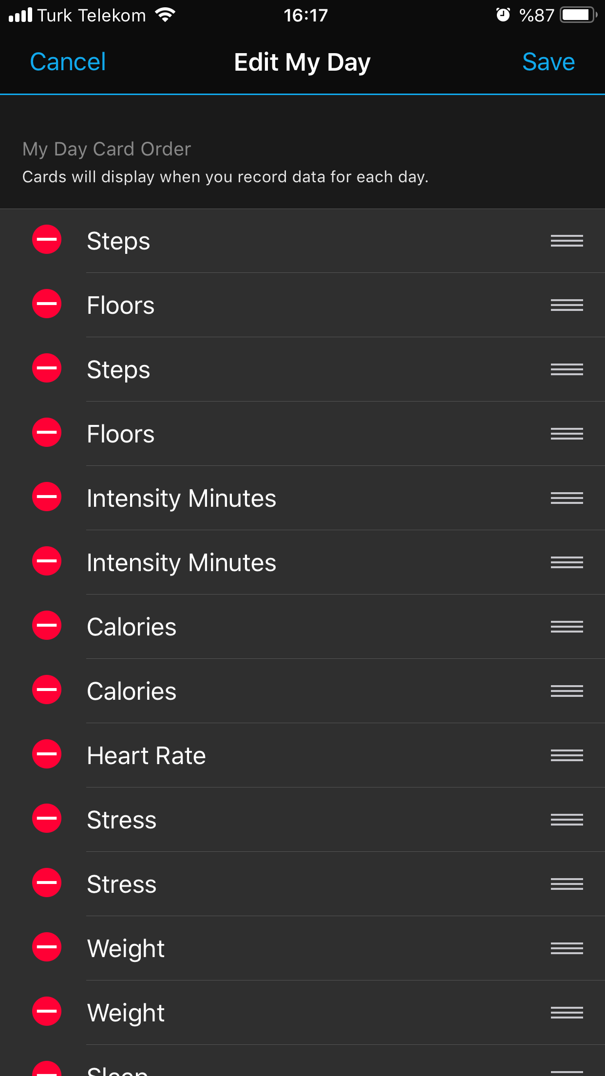 I think this is an open issue , when clicking on edit my day all items are duplicated, please see the screenshot on attachment.