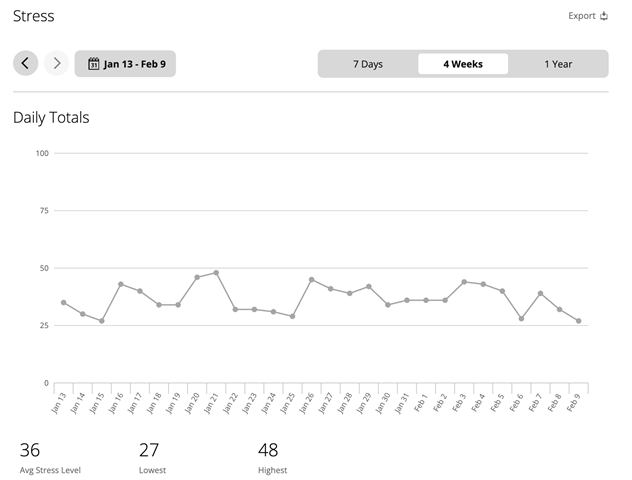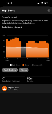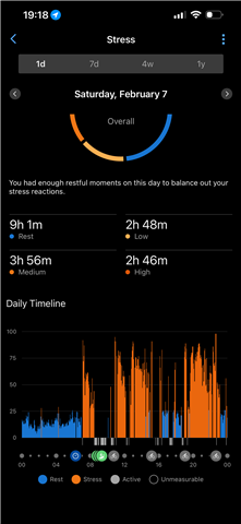 - I experience periods of high stress (for hours) which shows in my stress graphs