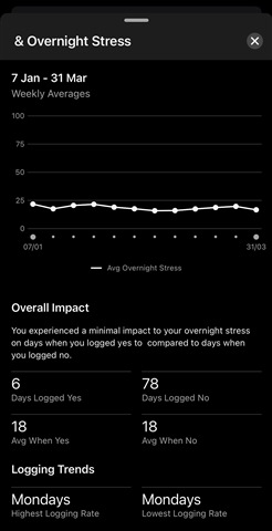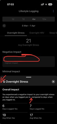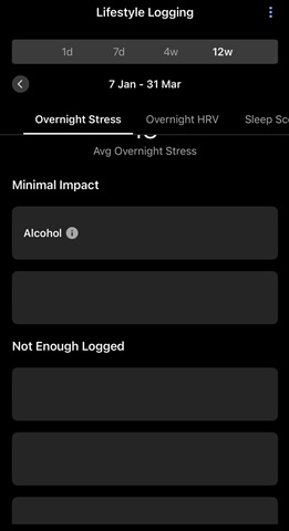 When I try and view the Lifestyle Logging view for any of the 7d, 4w or 12w periods on the current version of Garmin Connect for iOS (5.23.1.1), ALL of my logged custom behaviours are now blank (ie have no title whatsoever) and when I tap on these blank boxes, the resulting page is titled “& Sleep Score” or ”& Overnight Stress” or “& Overnight HRV” (in other words have the behaviour title missing and it’s also missing from within the overall impact text). This has only been the case since the most recent update.