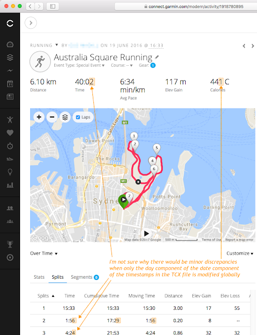 Now, interestingly, when I exported a thus-affected activity record to a TCX file, then replaced the timestamps globally in the file to put the activity on a different date, then imported the modified file back into Garmin Connect as a different activity, I can see the lap markers in the map for it. It does not matter whether I put the date of the activity record forward or backward; I have already tried both. So, the criterion in question would appear to have something to do with the sync or upload date for an activity record, and not the activity date itself.