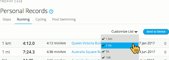 But there's nothing to stop you suggesting such a feature to Garmin. In that respect. I never get the 1 mile record updated despite it showing on my device (935). I've always wondered if it's because I use metric units.