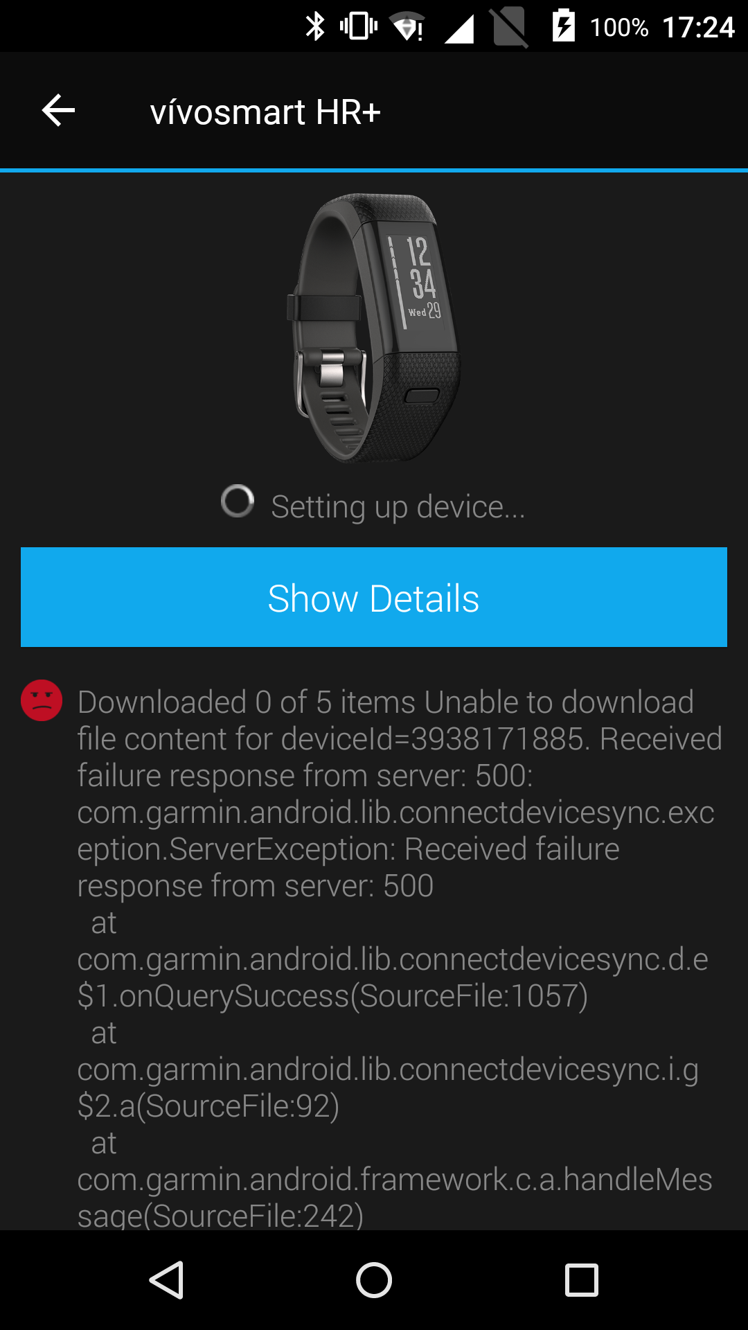 I cannot pair my vivosmart hr+ with an app error message in attachment