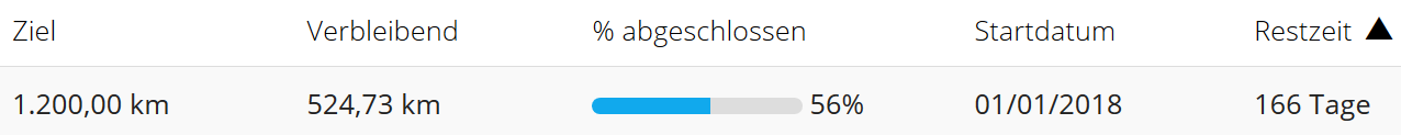 1st of July 600km are equal to 50% overall and 100% from now. The chart is green.