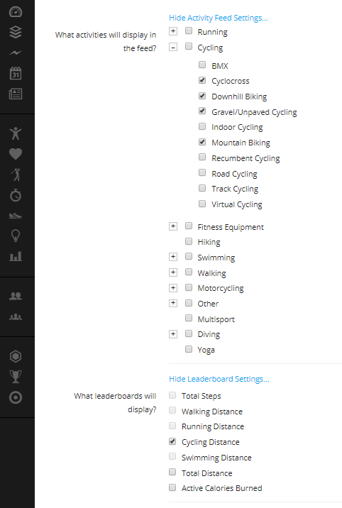 As seen in the attached photos, we would like the leader boards to only container the accumulated distance of the activities displayed in feed and to not have the leaderboard ruined by road rides and road commutes.
