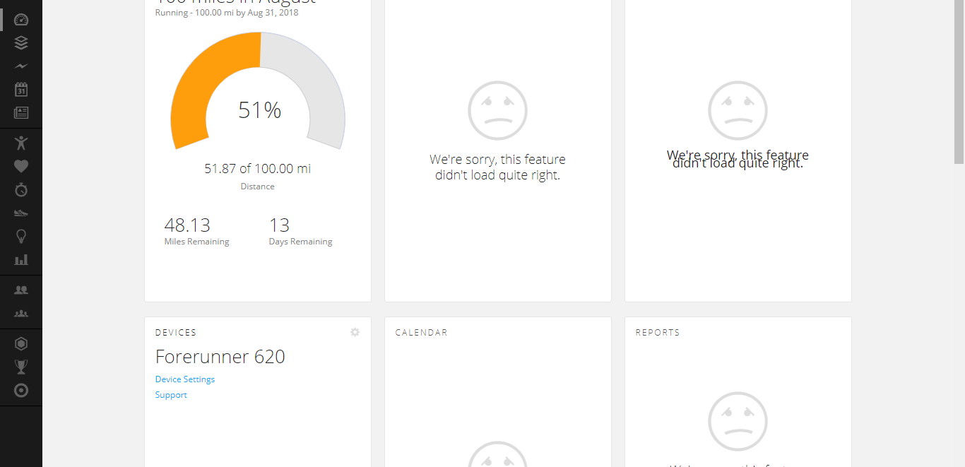 Same with me. A minute ago, no dashboard, no activities. Just personal records visible. Seconds ago, dashboard is available, but activities not. One of the reasons I preferred Garmin was reliability, but I must say I have been losing confidence...
