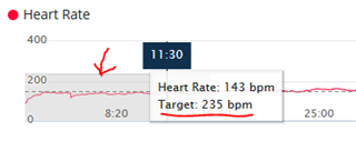 For example on the picture below you can see Workout that I run with an HR target of 145bpm, however, on the Connect web page on HR graph the HR Target is set to 235. This does not look right?