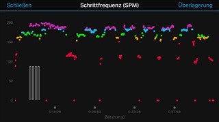 After the Warm up i should run at 150-200 steps per minute, target-line shows just half target (88stp).