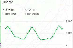 The height data shown in the Garmin connect web seems wrong. If I count the peaks the sum of the climbs is 2450m.