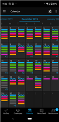 • Behind the black bar on the left is where you select what shows on the calendar.There are 2 rows of 3 dots just tot he left of the today icon. Click on it and you should be able to select what appears in the calendar from the dialog column that opens.