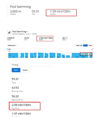 Mentioned this when returned from the pool this morning. There seems to be different avg paces on the web - 1:59 and 2:09. Mobile app and watch itself show 1:59 only.
