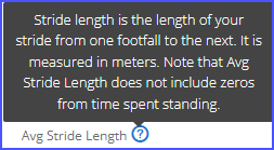 Stride length is the length of your stride from one footfall to the next, measured in meters. For watches and/or HRMs that support it.