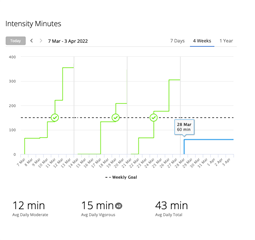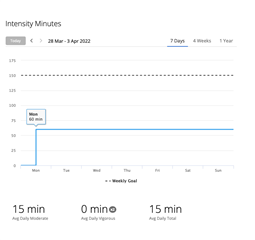 Also notice that for the Monday walk activity, Fenix displays intensity minutes and graph correctly, Connect web displays graph, but Connect iOS displays incorrectly. Last picture shows how it was working previously! Nowhere does it show the intensity minutes from Wednesday activity recorded on Edge 530+HRM-Pro. (I do not believe Edge can display intensity minutes directly on the device)
