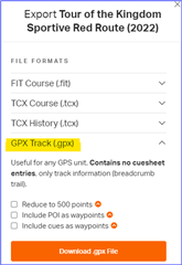 The route I'm after is here - https://ridewithgps.com/routes/29325989