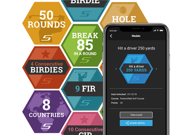 Shot Scope watch made it for their users - badges breaking 80 for the first time, consecutive birdies, playing US Open or Open Championship courses, 250 m drives, 3 birdies consecutive, playing in other countries, and others ..