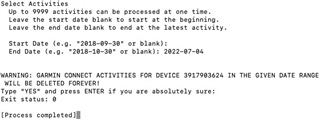 My Forerunner 920XT died, so I picked up another second hand. I didn't think to clear all the data off it before syncing. Now I have all the previous users activity mingled in with mine. (It doesn't help that it is a fellow swimmer and we often swam together so there are duplicate entries for the same day and location!)
