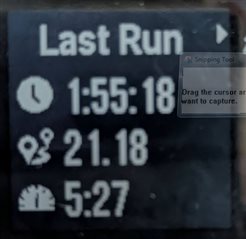 This morning I ran just over 21km. My longest run in over a year, but not by much (I've done a few 15-16km runs), though there shouldn't be a memory issue on the watch.