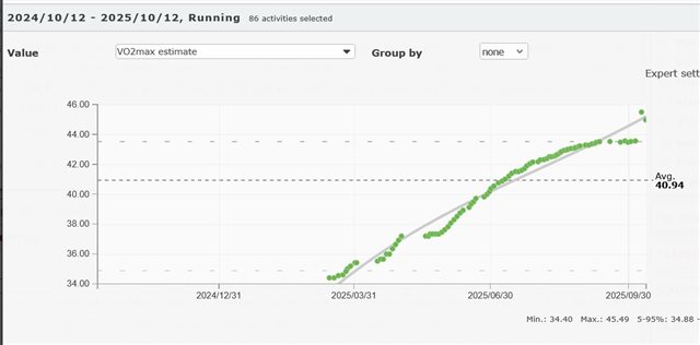 Anyway, I appreciate your input on this and will read your message again to try to get more insight on this VO2max stuff.  However Garmin / Runalyze are coming up with values, I have a trend telling me I have really peaked in this area, aside from a couple of strange outliers.