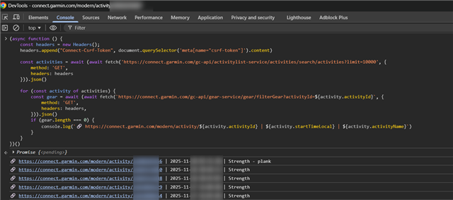 the old JS script to find workouts (run and bike) without any gear linked to them seems to be broken once the 2FA has been enable (at least that is the case for me). So far - not familiar with JS - I wasn't able to vibe code myself out of this hole.