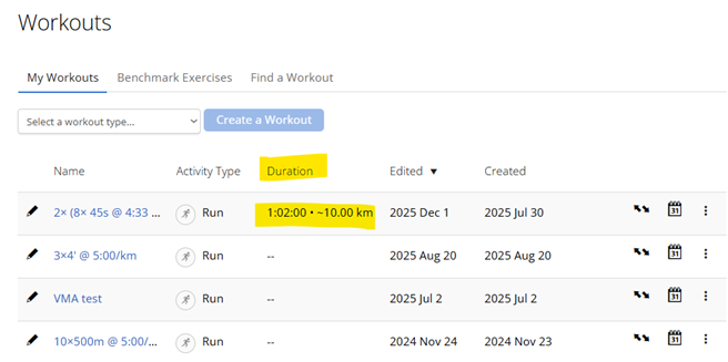 Is there a way to estimate the time of a workout given a certain profile. This would make planning a workout in a busy agenda, and communicating on it, a lot easier.