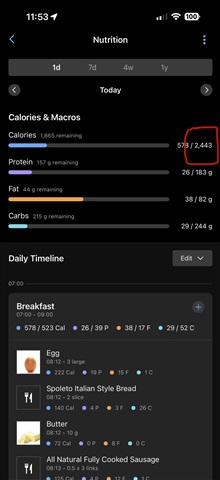 First bug/issue - I set a nutrition plan with the settings I want and it calculated a good calorie target. However, the calorie target in Nutrition is not carrying over to the "Daily Timeline" for both total calories, and subsequently the targets for each meal.
