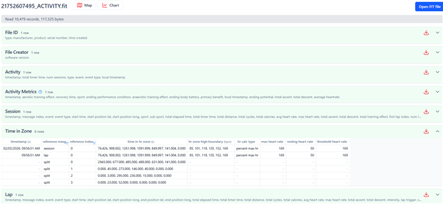 As of today all of my Backcountry Skiing activities stopped showing anything more than the basic data on the activity's page. That includes the activity that I had today. When I logged the last Backcountry Skiing activity on 1/30/2026 the data showed completely. All other types of activities that I have in my list still show complete data. Its just this single activity type. I tried exporting the file and viewed it raw in Runalyze and FIT File Viewer and I can see the data is there in the file. See screenshots below of Fit File Viewer showing HR Zone Splits as an example. Other screenshot is how it showing in Web Connect - just the basics with the map but nothing below as it usually does. My mobile app shows all the data for all of these activity types so this seems to be isolated to the Web version. I tried incognito and got the same result.