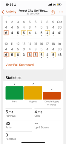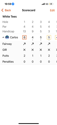 As you can see, on hole 12 I missed the green (X on the GIR row), but made par and had only one putt.