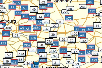 Das ist Sache des Kartenerstellers. Die Strassen haben ein Attribut "ref", welches solche Strassennummern beinhaltet. Es ist möglich, den kartenerstellungsprozess so durchzuführen, dass die Strassennummern bei "grösserem Ausschnitt" wegfallen. Ob dies tatsächlich jemand macht, ist mir unbekannt. Wenn es wichtig ist, mal Karten verschiedenenr Hersteller ausprobieren. Oder dies einem Kartenersteller als Verbesserungsvorschlag geben.