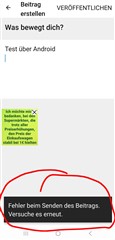 Bei dem Klick auf Veröffentlichen erhalte ich seid gestern die Fehlermeldung: Fehler beim Senden des Beitrags. Versuche es erneut.