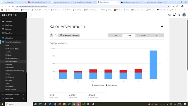 Die Gesundheitsstatistik von heute zeigt plötzlich 9'000 Ruhekalorien für den heutigen Tag. Was ist da falsch im System? Bis gestern hat alles noch gestimmt...
