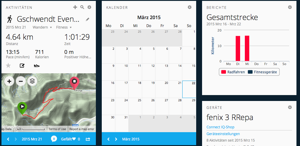 Garmin Connect - Wandern + Berichte