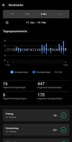 Seit Anfang Februar zeigt meine Venu3 utopische Trennaufstiege an. Auch wenn ich in der heimischen Wohnung bin, werden Treppenaufstiege "erkannt" und gezählt.