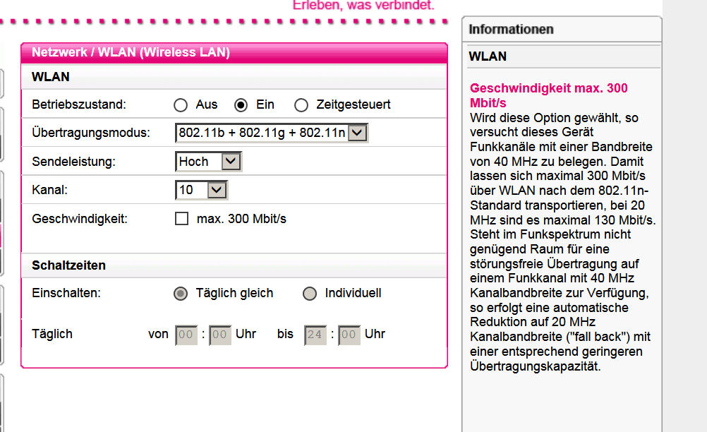 ** Mindestens die Speedports spinnen auch gerne wenn man den Haken bei "300 MB/s" setzt.