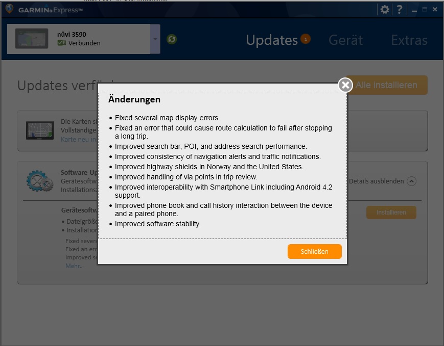 Hallo, habe gerade über Garmin Express die neue Gerätesoftware 8.1 für mein Nüvi 3590 geladen.:D