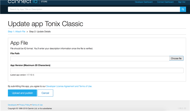 I'm getting a message (below) when I try to upload a new version of an app into my Developer Dashboard.