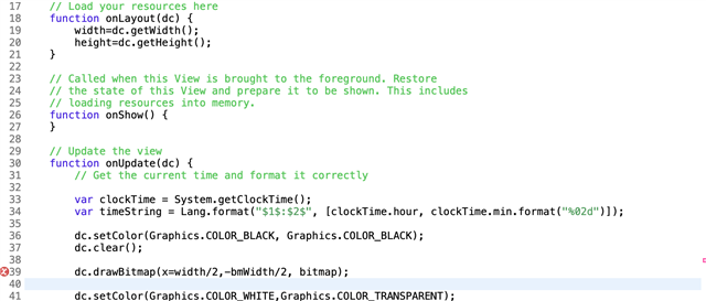 - onUpdate() at /Users/ramirezla/eclipse-workspace/RUTA/source/RUTAView.mc:51 0x10000191