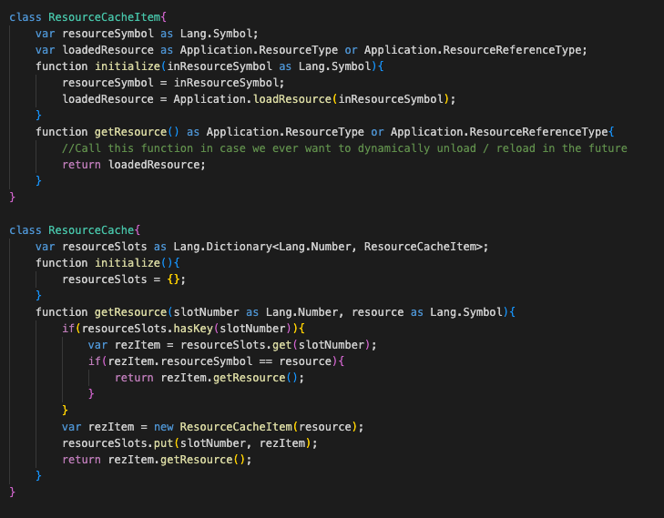 - All my watch faces use exactly 1 BufferedBitmap set to the full dimensions of the DC. I use anti-aliasing, so I cannot use a pallet. I also do not specify a color depth. This BufferedBitmap is stored in a variable inside the class that extends WatchUi.WatchFace.