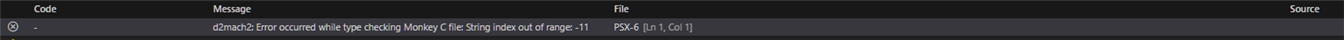 d2mach2: Error occurred while type checking Monkey C file: String index out of range: -11