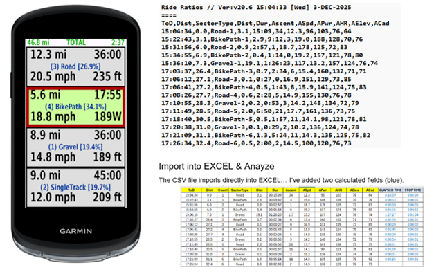 On my EDGE 1050, the TXT based device LOG file (and BAK file) maxes out at about 6KB. Each can contain about 85 rows of the CSV data I write whenever you tap to select a new sector type during a ride. Provides for easy loading into EXCEL for post-ride analysis.