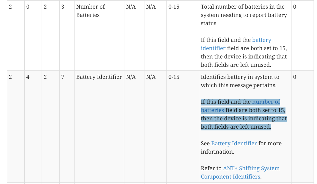 I have written a routine for reading the battery status of components in electrical shift systems.