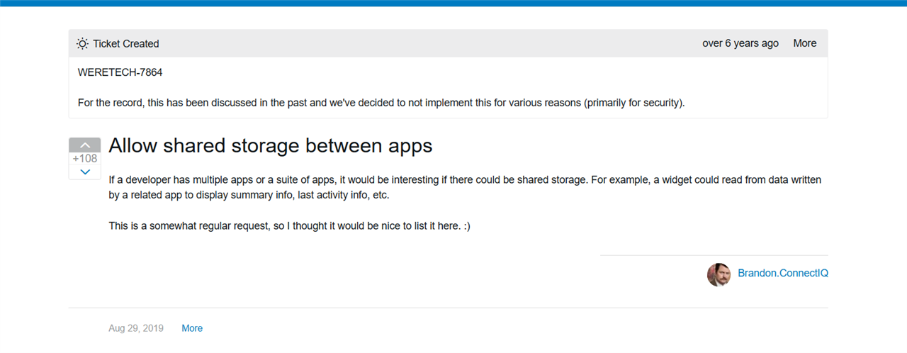 Is there any supported way to share persistent state/properties between a watchface and a watch-app (e.g., via Application.Properties or any other shared storage), or to update watchface configuration/state from the watch-app?