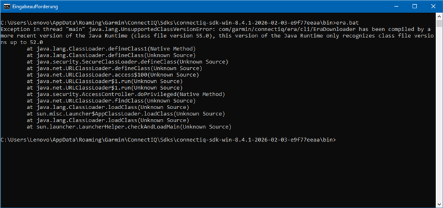 com/garmin/connectiq/era/cli/EraDownloader has been compiled by a more recent version