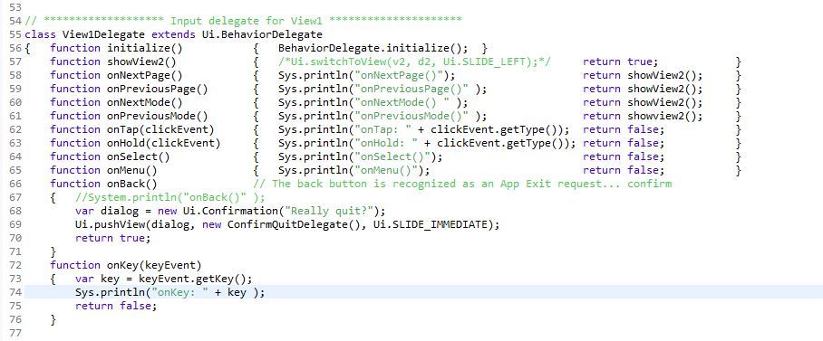 I have a BehaviorDelegate that calls Sys.println() for each type of user input that the BehaviorDelegate has methods for.